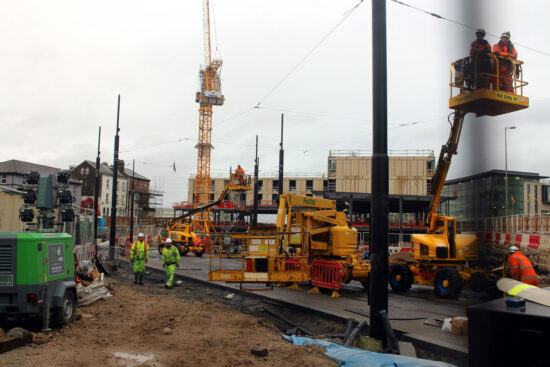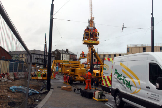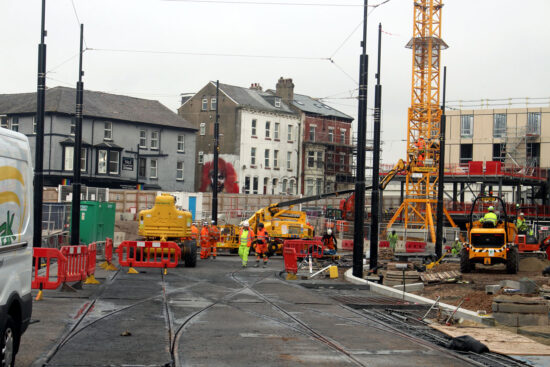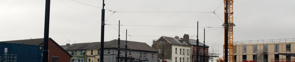 Another day and another update from Blackpool where we take a look at recent progress on the construction work being undertaken for the extension of the tramway to Blackpool North Railway Station. In this update we again head up to the old Wilko’s site where there have been more span wires installed on the newly erected overhead poles whilst the line ears are now also being installed. Meanwhile, there is also progress with further concreting being done at the terminus.