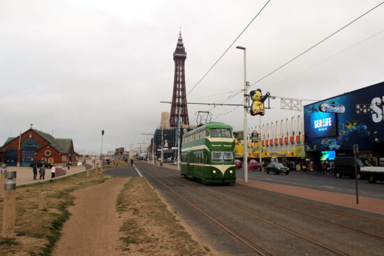During September 2021, 700 received a new coat of Wartime Green and Cream having spent the past few years in the Flexity type Purple and White livery as it had controversially received the B-fleet modifications which saw it get widened centre entrances and modern bumpers. But as one of the planned highlights for the heritage fleet in 2021 it was lucky enough to be fully repainted into this popular livery but hasn’t yet carried normal passengers with this look as a door fault prevented its use during the Anniversary Weekend. This image – with the tram having just passed the Tower – was taken on 25th September 2021 and shows 700 on a brief Private Hire.