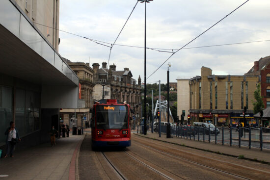 Then on 10th September 2021 we see 110 now in the red and blue Stagecoach design which is now likely to remain the fleet livery until such a time as Stagecoach lose the operating contract. In this shot 110 is heading away from Castle Square and towards Fitzalan Square/Ponds Forge in Sheffield City Centre.
