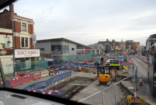 After the flurry of activity during the second half of 2021 – mainly to install the junction with the existing city centre line at Bull Street/Corporation Street – we’ve been a bit quiet on the construction works in connection with West Midlands Metro’s Birmingham Eastside extension but there has been some work continuing as we see in this latest progress update from the camera of Ken Jones.