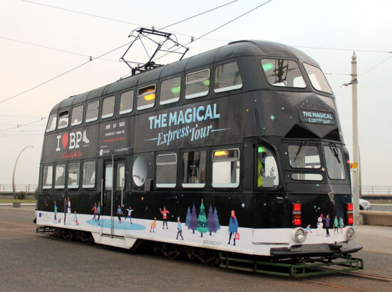 Balloon 723 received this vinyl wrap livery for The Magical Express Tour back in November – the first full vinyl wrap advert on heritage tram for over 10 years. The Balloon Car (which previously had a coat of 1980s green and cream) is seen just arriving at Pleasure Beach with a run of The Magical Express Tour.