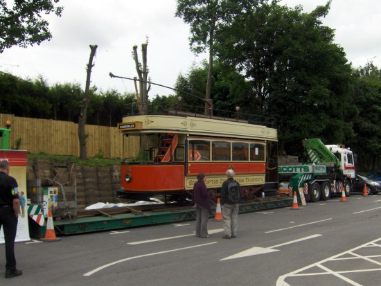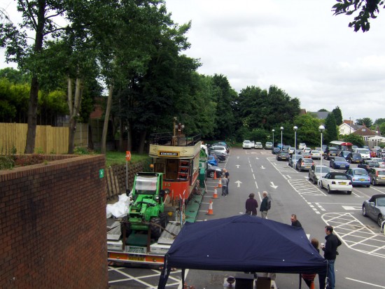 Southampton 45 made a trip on a low loader to Kimberley in Nottingham for one day only to help the town celebrate the centenary of the “Ripley Rattlers” tram system. 45 was chosen to go on display as it is of a similar type to the tramcars which did operate on the Nottinghamshire and Derbyshire Tramway which started operating in Kimberley in 1913.