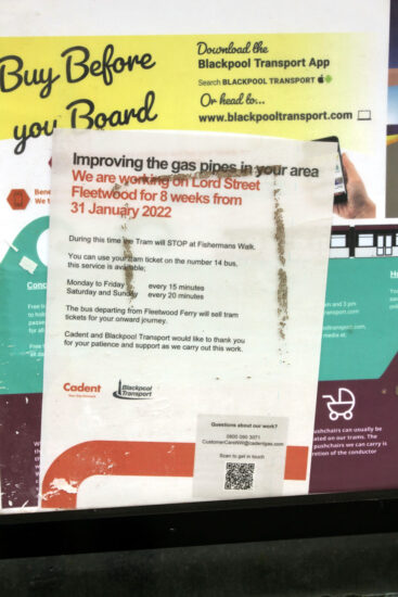 Trams from Starr Gate have only been running as far as Fisherman’s Walk from Monday 31st January with the work due to carry on for up to eight weeks. Cadent are working on replacing the gas mains along Lord Street with state of the art equipment which has necessitated this temporary closure. It will affect both the core tram service and the heritage Coastal Tours during this period. For the core service it means trams run Starr Gate to Fisherman’s Walk throughout these eight weeks. We queried last time we reported on this what it meant for Coastal Tours and their 40 minute break in Fleetwood and the answer is not a lot! With the exception of trams only running to Fisherman’s Walk there will be no other changes to the tour including the 40 minute break to explore the area with the tram running North Pier and Tower-Fisherman’s Walk-North Pier and Tower.