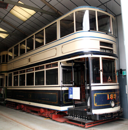 With the centre road of Depot V temporarily cleared it was possible to get a better view of some of the trams still inside. Glasgow 1282, seen here, has not operated since the ‘Glasgow 50’ event weekend held at the museum back in September 2012, although a fundraising appeal is in place to get it back into the operational fleet.