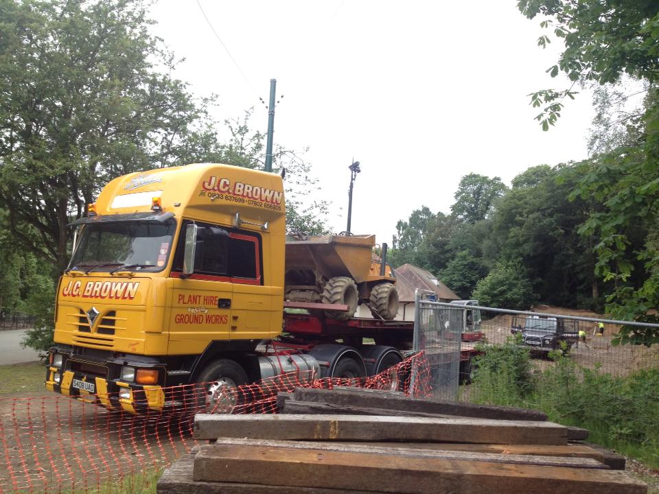 The arrival of various plant at Heaton Park on July 2nd, with the Lakeside Depot worksite visible in the background. (Photo courtesey of the Heaton Park Tramway Facebook page)
