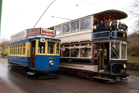 The new Front Street Terrace – part of the new 1950s Town at Beamish – was officially opened on Saturday 19th February. Although the trams will not be running into the 1950s Town (eventually a trolleybus route is planned), the grand opening day of Front Street did see a three tram service in operation – thought to be the first time since at least March 2020 that three trams have been in public service at Beamish at the same time.