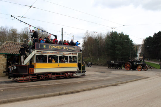Beamish is again the location for this edition of “Trams &” with another of the resident trams in action alongside a visiting steam road locomotive during one of the special events.