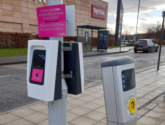 Away from the extension but a new development nonetheless is the installation of new validators on the platforms. There will be two new ones for each old one and as well as being able to validate existing smart cards they will also allow passengers to pay using a single touch of their credit or debit card for a single journey. If the same card is used several times during the day a single journey charge will be added each time with a cap of a day ticket charge no matter how many additional journeys are made. This will bring the tram into line with Lothian Buses which uses the same system on all its city buses. (All Photographs by John Hampton)