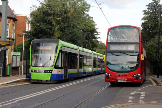 In this latest instalment of “Trams &” we are off to South London as we take a look at a tram running on the Tramlink system along with the distinctive sight of a red London bus.