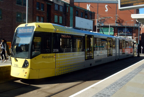 The latest Manchester Metrolink M5000 to enter service is 3136 with the tram being seen carrying passengers for the first time on Saturday 19th March 2022.