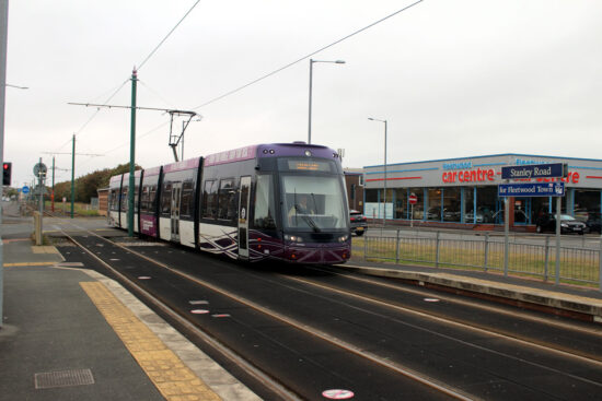 The red building in the mid-distance on the right is Fleetwood Fire Station as we look back south at Stanley Road tramstop.