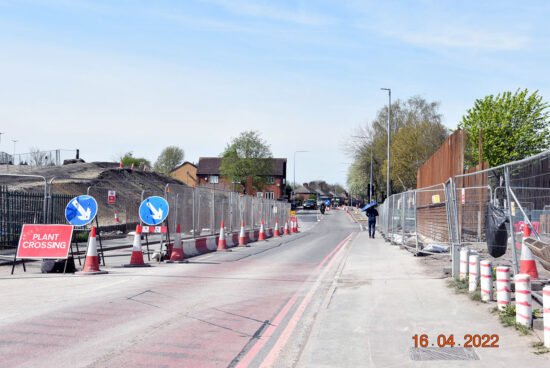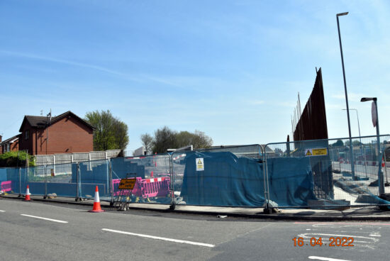 As part of the construction works it has been a necessity for some of the old railway bridges to be replaced with new structures which meet all modern requirements to allow for trams to operate safely across them. One of these crosses the A457 at Sedgley Road and after the old bridge was demolished last year work is now underway on its replacement. Whilst much of the work is taking place behind high security fencing the access roads built can be seen along with the concrete and steel in place as they build the bridge.