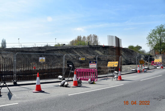 We have recently seen good progress being made on Castle Hill, Dudley on the construction works for the West Midlands Metro extension to Brierley Hill but that isn’t the only location on the route where the Midland Metro Alliance are hard at work. In this pictorial update we head a bit further towards Wednesbury to see ongoing bridge replacement work. Ken Jones provides the photos.