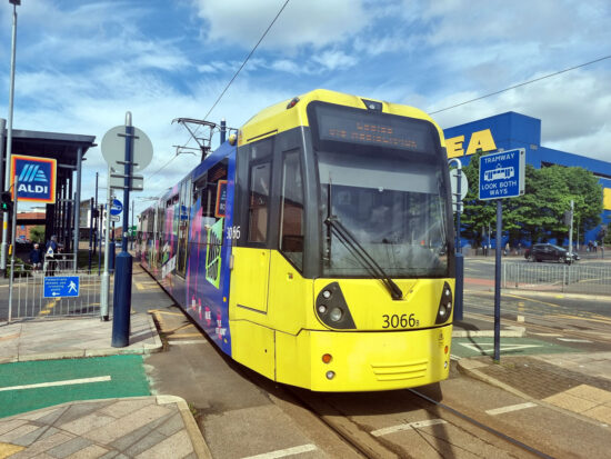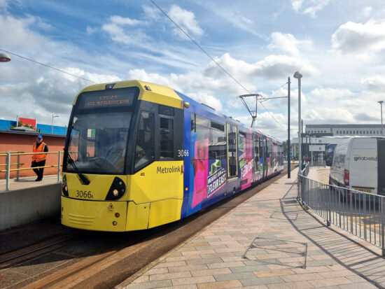 The longest advertising contract on Manchester Metrolink has come to an end with 3066 losing its long-standing vinyls for the Clean Air Manchester campaign. But its not a return to fleet livery for the tram as those vinyls have been replaced by a new advert for Hits Radio – no stranger to advertising on Metrolink having previously had an advert on 3103.