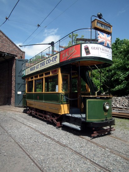 The Black Country Living Museum in Dudley has the only operational 3’6” gauge tramway on the UK mainland and normally operates a one tram service between the entrance and the town using either Wolverhampton & District 34 or Wolverhampton 49. The Museum also has a fleet of trolleybuses which operate regularly. Unfortunately due to a broken rail trams are currently only able to run between the Mine and the Town.