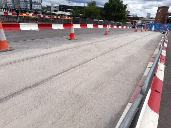 Back to the present and recent weeks have seen some significant progress on the final stages of work. This has seen overhead wires installed from the junction at Bilston Street and along Pipers Row whilst in front of the station there has been further track laid. This has included 92 metres of single track which has not only been installed but welded into place.