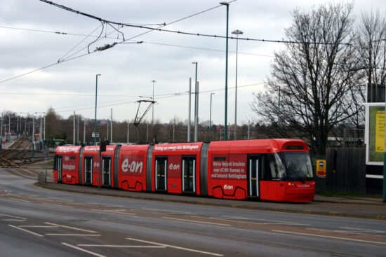Of all the advertising liveries to have been seen on Nottingham Express Transit, one company keeps coming back for me – under two different names. Now known as e-on, the energy company had been founded in 1989 as Powergen and it is under both brands that they have advertised on NET. Powergen advertised on 201 and 213 at the start of services in 2004 and then 2012 to 2016 208 and then 206 saw adverts applied for e-on. After a gap e-on returned to advertising on 213 in 2020.