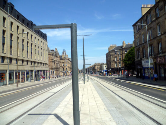 Main construction works have now been completed between Montgomery Street/Annandale Street and Pilrig Street which will allow two-way traffic to be returned from Pilrig Street to London Street. With the fencing removed its also allowed a good chance to see the finished works. Although main construction works are considered finished here there does still remain some other work to take place including the all important installation of overhead wires.
