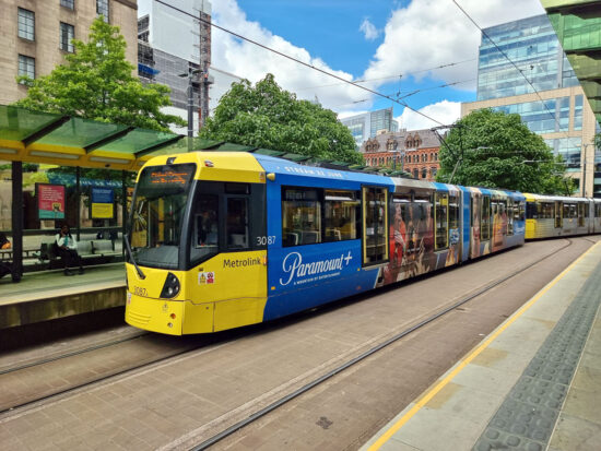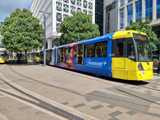 We mentioned a few weeks back that Manchester Metrolink M5000 3087 had received a new advert for Paramount+ and now we bring you photos of it! The advert was applied back in June 2022 and is the first full advertising livery that this tram has received since entering service in September 2014.