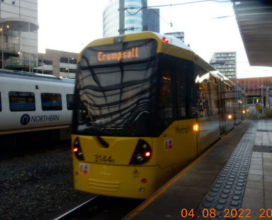 The previous tram to arrive – 3144 – has also entered service. It was first noted in service on Thursday 4th August when it was running on the Bury route – this was believed to be its first workings since commisioning and mileage accumulation.
