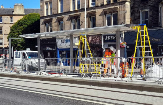 The shelter being installed is of the same design as that seen on the first section of the tramway (Edinburgh City Centre to Edinburgh Airport) which provides limited protection from some of the more extreme weather occasionally seen in the Scottish capital.