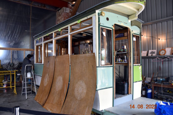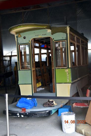 Good progress is being made with the restoration as evidenced by regular updates on their Facebook page. The most recent update has shown that the platforms have now been all but finished bringing the tram back to almost its full 25’ length whilst work is also taking place on finding the right shade of green for the paintwork.