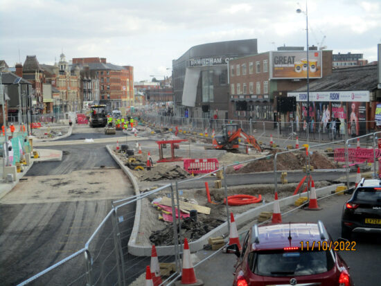 The Kings Parade site in Dale End (which housed a McDonalds until 2021) will see hoardings erected around it at the start of week commencing 10th October and demolition work will then start soon afterwards. The complete demolition is scheduled to be finished in spring 2023. Advance utility diversions and upgrades will take place at the same time ahead of track laying due to commence later in 2023.