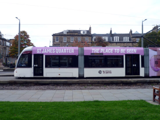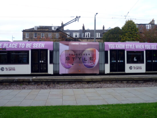 The past week or so has seen two new adverts unveiled on trams in Edinburgh – one is a second design for the same sponsor whist the other sees a brand new advertiser on the trams although with a link to another regular advertiser.