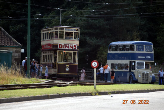 In this photo it is joined by Rotherham Daimler CV6G 220 which is providing extra capacity to transport people around the museum on this day (27th August 2022). This is one of a couple similar buses in the Beamish fleet which have proved to be invaluable since Covid by giving that extra capacity in the transport offering.