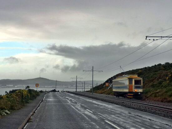 Storm clouds gather over Douglas as 7 climbs away from the town on its way north. (All Photographs courtesy of Manx Electric Railway Online)