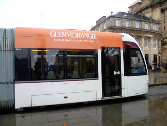 The changeover of adverts on trams in Edinburgh is still showing no signs of abating with the start of November seeing a further two trams have a change. Those two trams are 263 and 277 with the former welcoming a new advertiser to the trams whilst the highest numbered tram in the Edinburgh fleet has an identical advert to another tram in the city.