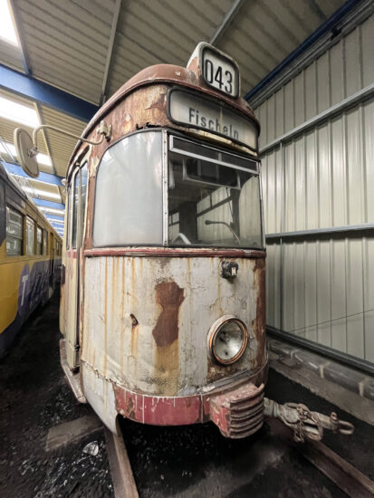 The last tram at NELSAM is Krefeld 412, a tram which shows the effects of many years of outside storage. The German tram first found itself in the UK when it was donated (along with a trailer) to Leicester, which was Krefeld’s twin city, with the hope for an operating tramway in the East Midlands city. This didn’t happen and after a spell at the Great Central Railway it ended up in Walthamstow before being acquired by NEETT. (All Photographs by Scott Spencer, 9th November 2022)