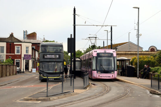 The location for today’s edition of “Trams &” is the Blackpool Tramway as we head to the northern outpost of the system at Fleetwood to see one of the modern Flexity2 trams alongside one of Blackpool Transport’s buses.