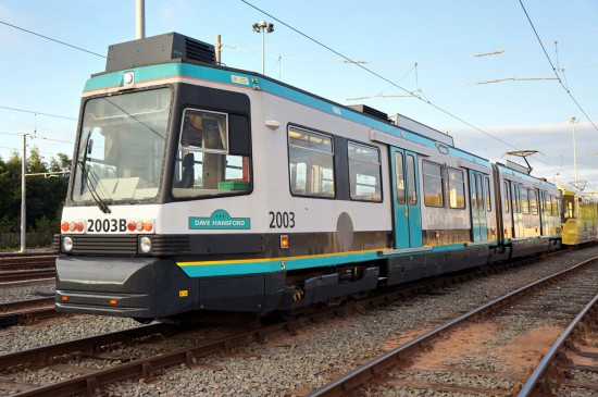 Manchester Metrolink T68A 2003 has become the latest tram on the system to receive a name following the application of “Dave Hansford” vinyls. Dave is one of the longest serving drivers on Metrolink and has recently retired. He first became a member of staff before the system opened in 1992 and held a number of operations positions but in recent years he had reverted to full-time driving. It is hoped that the name will remain in situ until 2003 is withdrawn from service which it is now thought will be towards the end of this year.