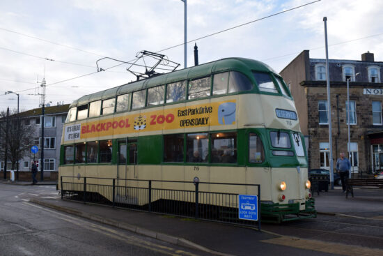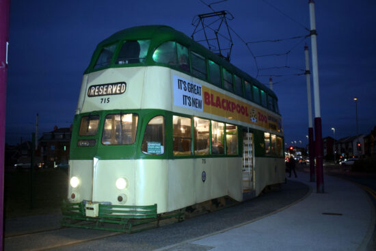 Blackpool Balloon 715 – owned by the Fylde Transport Trust – is now officially withdrawn from service after running a special Farewell Tour during the afternoon and evening of Saturday 19th November 2022. It had been announced during the summer that a mutual decision had been reached by the FTT and Blackpool Transport Services to take the tram out of service and put it on static display at Tramtown and this special tour was the last chance to both ride and see the double decker out on the Promenade.