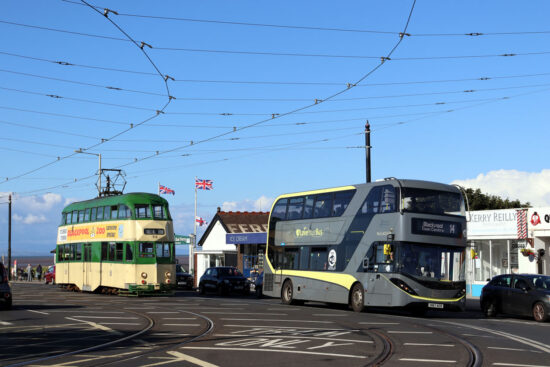 Today “Trams &” is in Fleetwood as we feature the now withdrawn Balloon Car 715 alongside a modern day Blackpool Transport bus.
