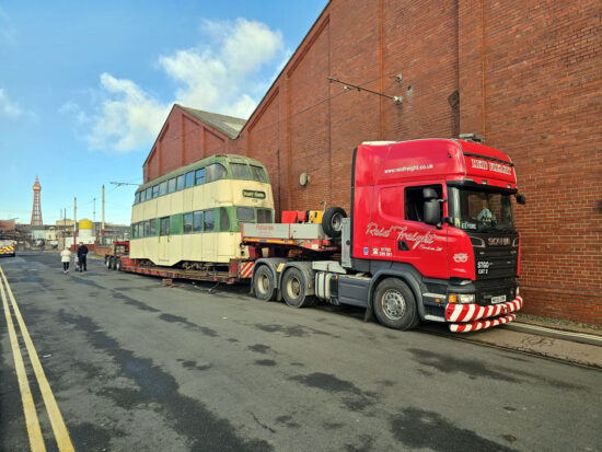 Another week and another tram takes a journey on the back of a low loader! This time it’s the turn of Blackpool Balloon 708 which departed Rigby Road Depot in its home town to make the trip to the Trolleybus Museum at Sandtoft where it is set to become a play tram as the museum continues to increase their family offering.