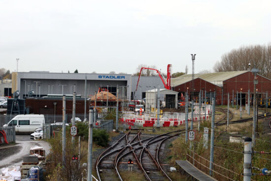 The depot has been subject to redevelopment to cater for the new Stadler built trains which are due to start to be delivered from Switzerland imminently. There is no doubts of who is operating the depot with the large Stadler on the new shed which is part of this major investment. (Both Photographs by Trevor Hall, 24th November 2022)