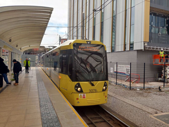 The long-term out of service trams on Manchester Metrolink have reduced by one again with the return to action of 3078. It was in service on Tuesday 28th March, believed to be its first day back in use since repairs were completed.
