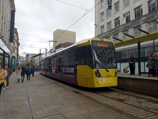 And as we mentioned earlier in the week, 3080 is also now sporting a new all over advert. It’s a new design for USDAW, a union who are no strangers to advertising on a tram as they previously had a wrap on 3064, which was only removed last December.