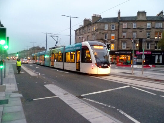 Its been over a month since we saw the first trams run on the Trams to Newhaven extension in Edinburgh. Since that first week of testing – which included trams running all the way along the extension – it had gone a little quiet with little said about the testing and commissioning which is still needed ahead of the line opening aside from a generic statement that it would be continuing. But trams have again been seen on the line this week as preparations for the start of service continue.