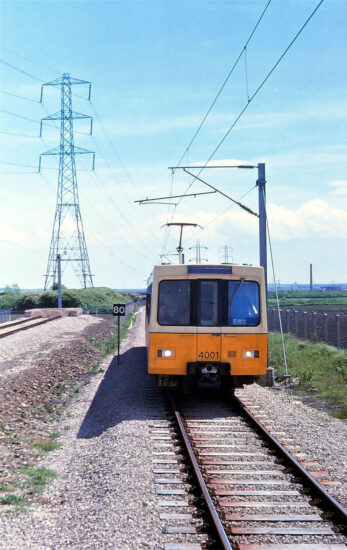 And the first Metrocar that we feature in this series of articles is also the very first which was built – 4001. There were two prototypes built by Metro Cammell in 1975 and both 4001 and 4002 were delivered to the region ahead of the system opening to allow for extensive testing to take place. For this a test track was provided on a 2.4km section of the Backworth Colliery Railway running from West Allotment towards Percy Main. With the track reconstructed and overhead installed an artificial tunnel was built and two road shed and basic platform constructed at Middle Engine Lane with the facility opening in June 1975.