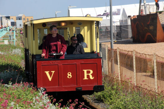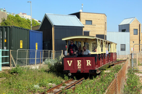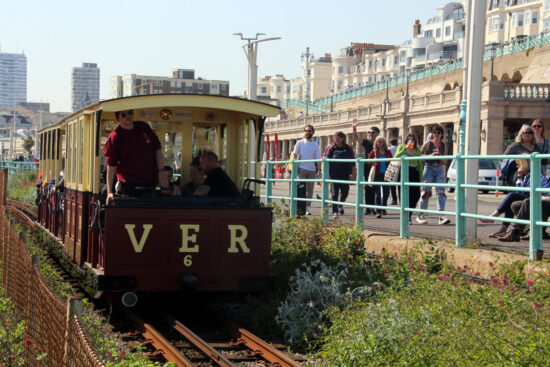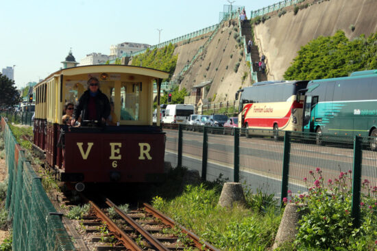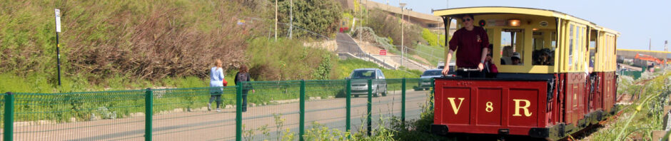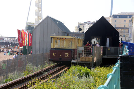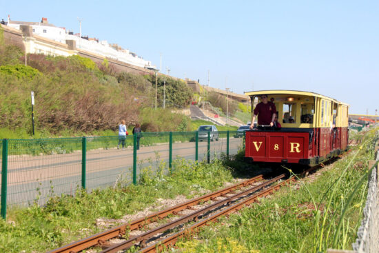 The Volk’s Electric Railway in Brighton will be celebrating 140 years of operation this year (a special weekend is planned in August as the centrepiece of the celebrations) and started its 2023 season back in April. Trains are now running all the way between the Aquarium and Black Rock (just short of the Marina) with a fleet of six units available for use. On most busy days two double sets run and that was the case on Saturday 13th May when Tony Sullivan paid a quick visit.