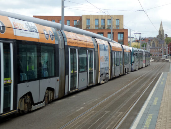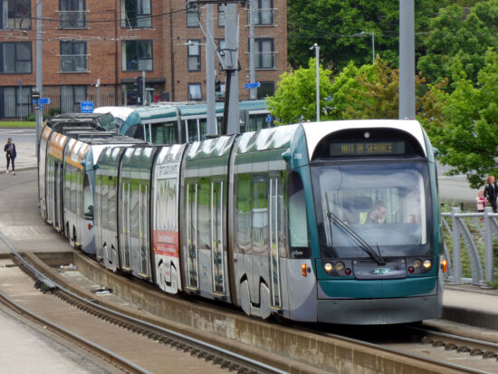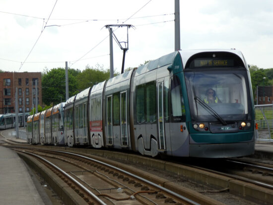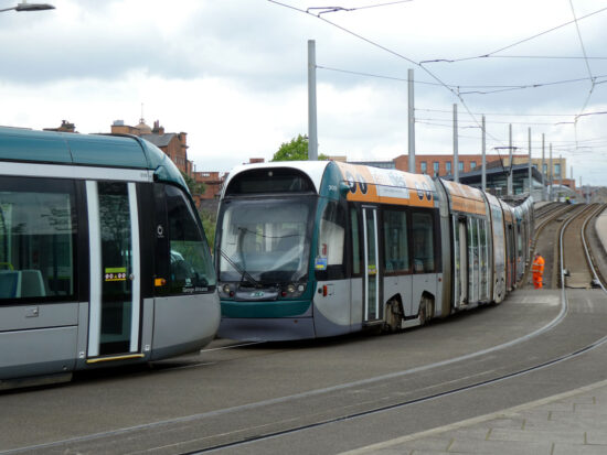 Services on Nottingham Express Transit suffered disruption on Friday 19th May after Incentro 203 failed just as it was about to ascend the ramp on the approach to Nottingham Station from Meadows Way. The failure led to no trams being able to run between Nottingham Station and Queen’s Walk and NG2 and also saw the fairly unusual sight of two trams coupled together as the errant vehicle was towed back to depot for attention.
