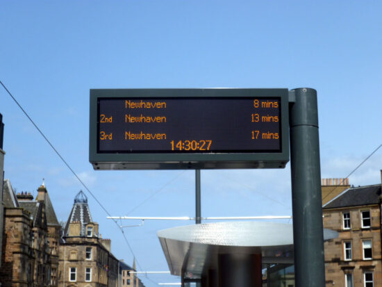 The information displays inside the tram also show Newhaven as the destination. Perhaps a little confusing for unwary passengers though the onboard announcements do make it clear that the tram will terminate at St Andrew Square.