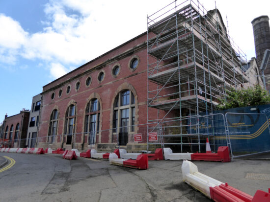 That overhead pole is located in Dryden Street in Leith which was part of the “back entrance” to Shrubhill Works. The depot has been opened in 1871 and originally housed horse trams until 1907 and was also the home of cable trams between 1899-1922. It was finally converted to overhead electric trams in 1922 and its from that date that its thought the overhead pole we feature was originally erected. Despite the fact that the depot was closed along with Edinburgh Corporation Tramways in 1956 the pole has remained.