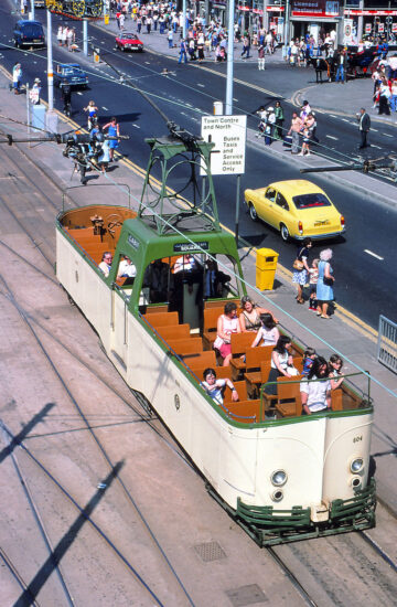 At this time 604 was operating with the single screen windscreen and was carrying the simplified cream and green fleet livery complete with Corporation crests. Retained as part of the Heritage fleet in Blackpool, the tram returned to its original number of 230 but hasn’t run since 2016 with it requiring a rewire before being cleared for service again.