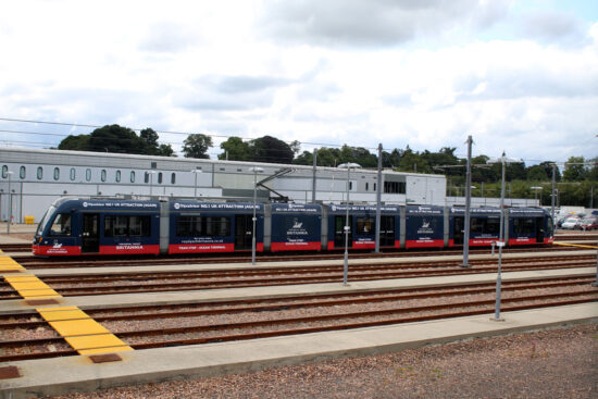 You wait ages for one to turn up (or for some people avoid) and then they keep on coming! We are of course talking about full vinyl wrap adverts on Edinburgh Trams as we now have a fourth design (third at the same time) with 260 the latest tram to receive one. This time its an advert for the Royal Yacht Britannia.