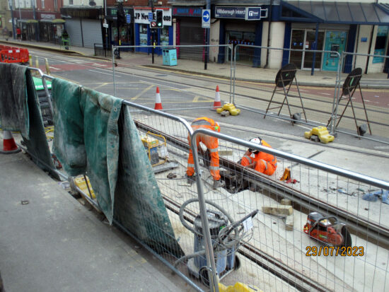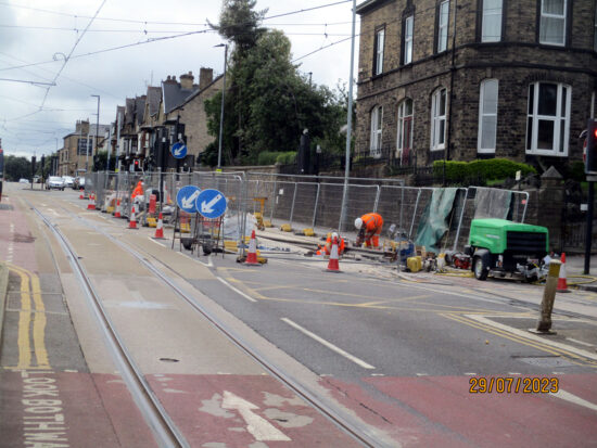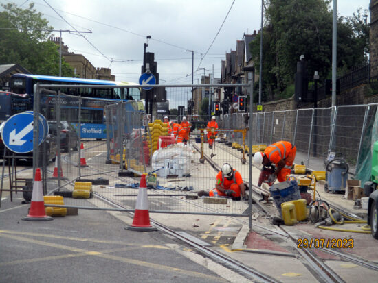 Phase two started on Thursday 27th July and the Supertram website describes the extent of this work as being “Works will take place between Ripley Street and Forbes Road. Road closure at Hillsborough Interchange for traffic towards Middlewood.” As with all stages of the work no trams from the city will go beyond Shalesmoor with all BLUE route services terminating there whilst the YELLOW route runs as far as Shalesmoor outside of peak periods (Monday-Saturday daytimes basically) and Cathedral at other times.