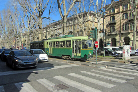 Turin is located in the northwest of Italy in the Piedmonth region. It first welcomed trams in 1871 when a horse system started operation with this starting conversion to electric operation in 1893. The system runs on the 4ft 8 7/8 inches gauge and now totals 55 miles (88km) of route miles with 10 different lines in operation.
